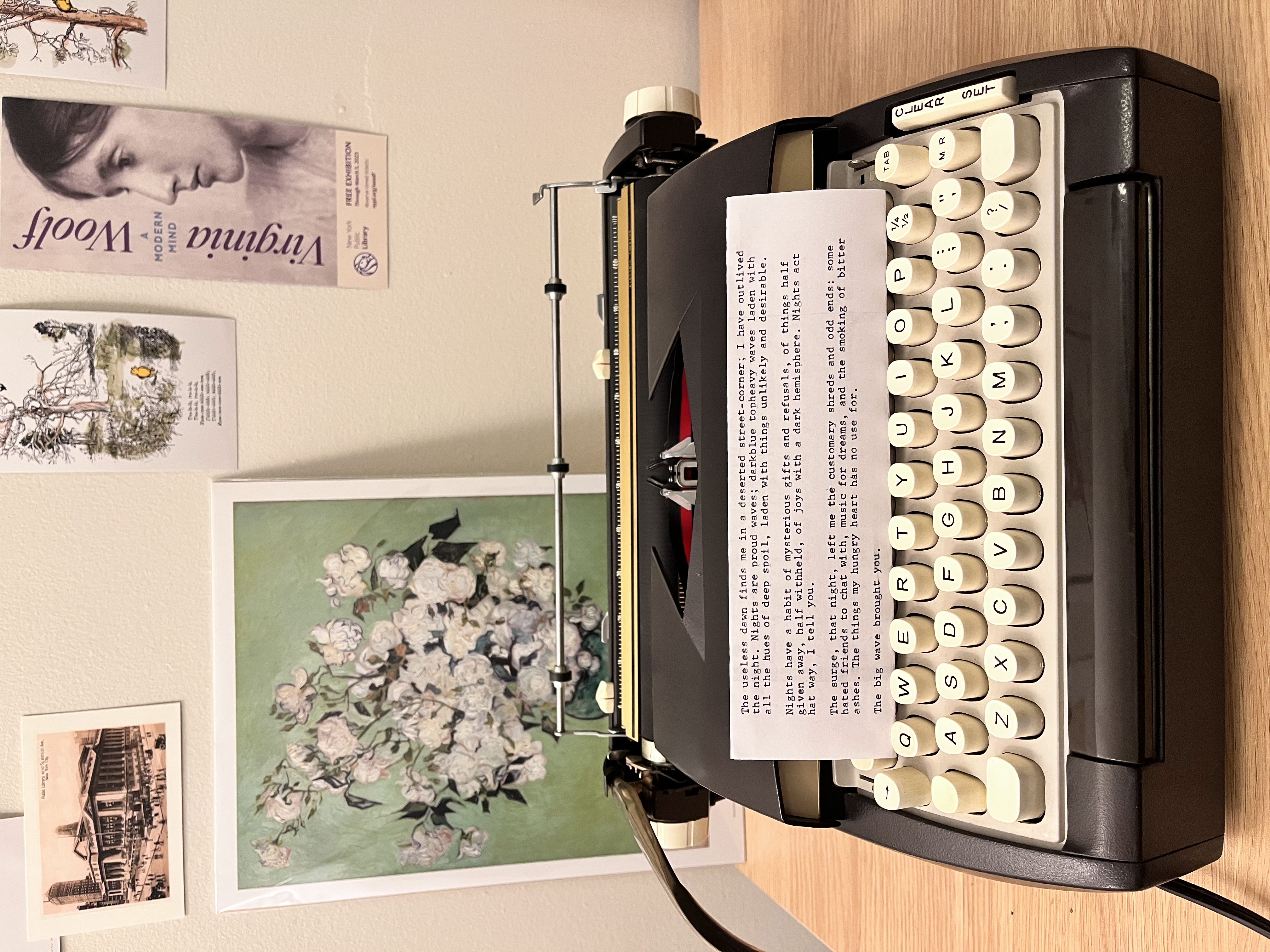 I will probably write half-finished short stories on my typewriter or dream up entire worlds while lost in a book or a show.